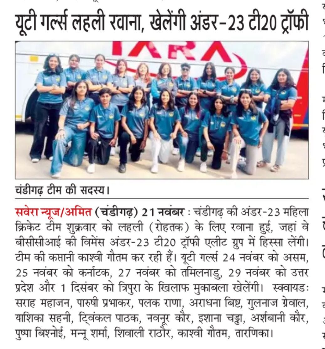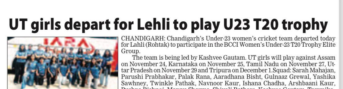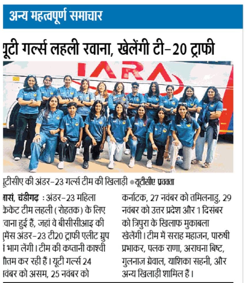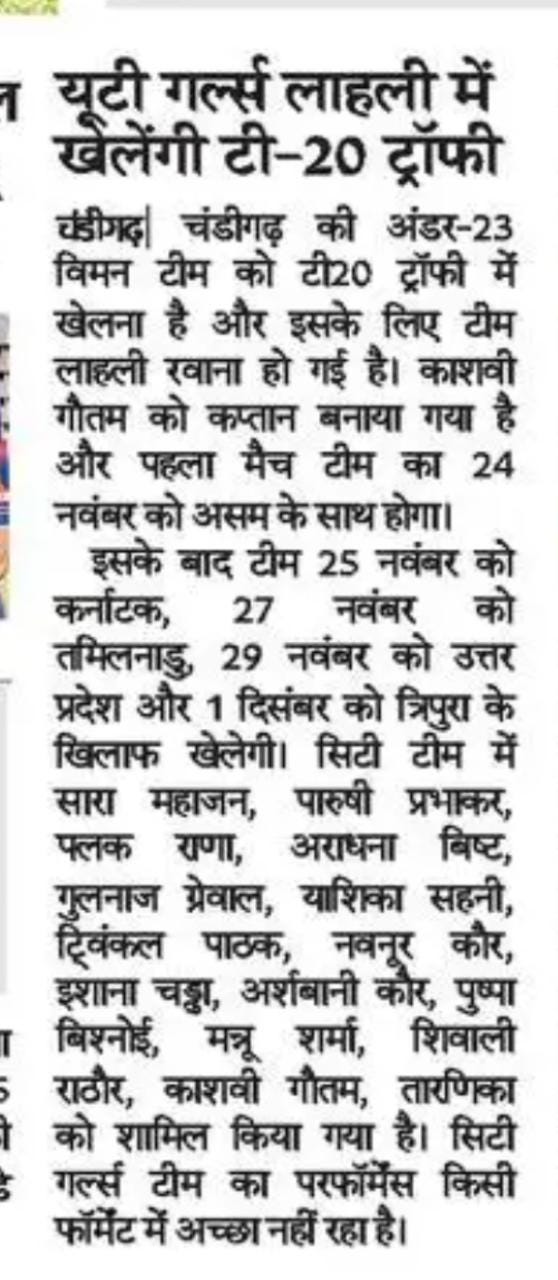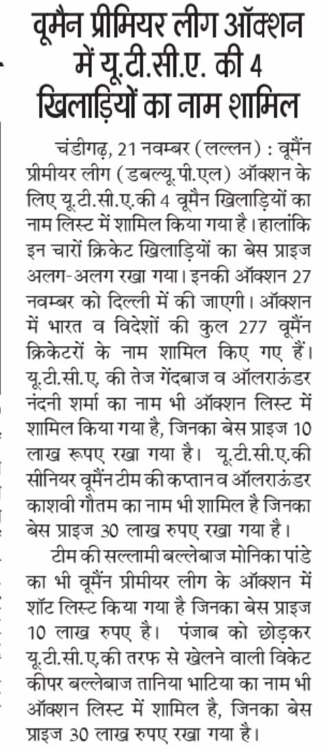 महिला प्रीमियर लीग के ऑक्शन के लिए यूटीसीए की चार खिलाड़ियों की एंट्री +11 more stories27 को दिल्ली में ऑक्शनChandigarh CricketNov 22, 2025Share