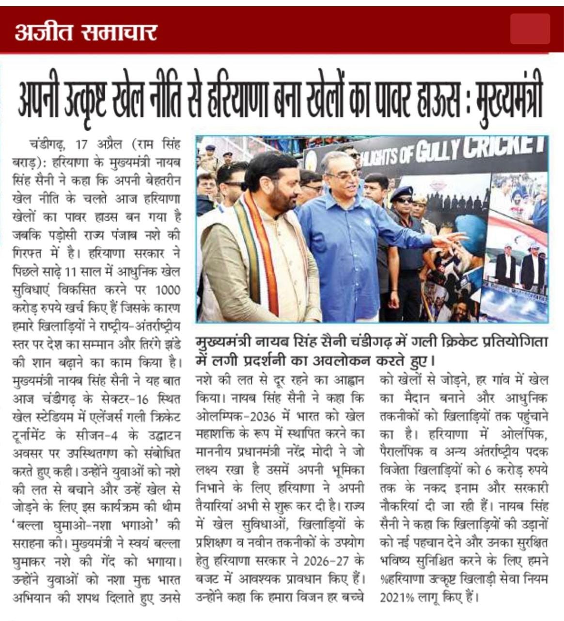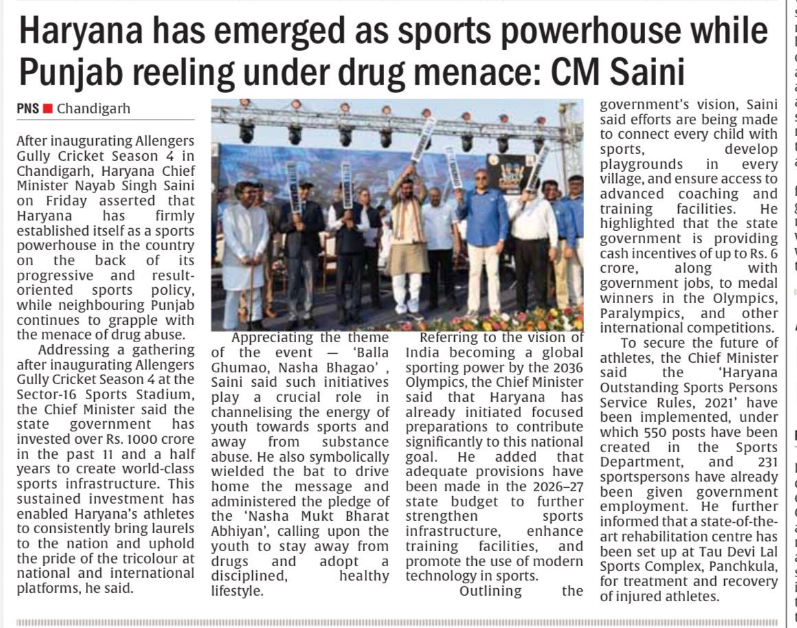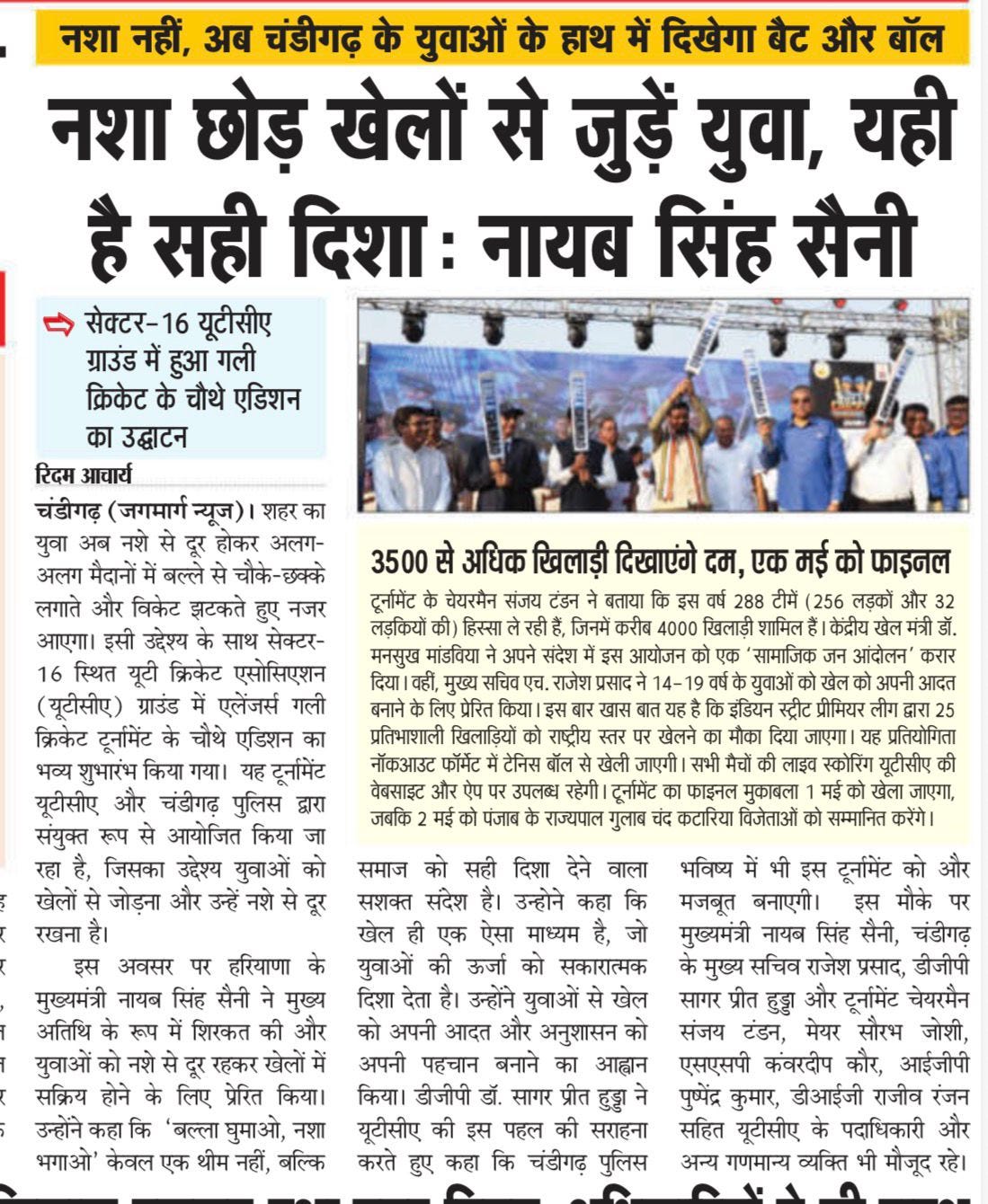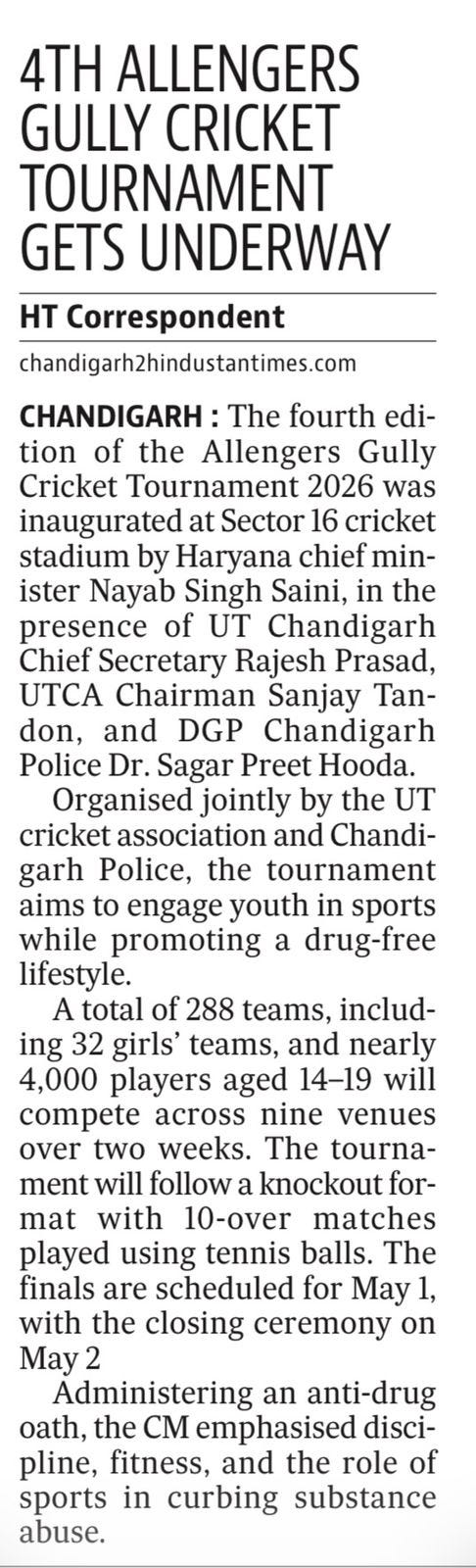 चंडीगढ़ में चौथे गली क्रिकेट टूर्नामेंट 2026 का शुभारंभ +18 more stories यह सिर्फ टूर्नामेंट नहीं, युवाओं के लिए एक मिशन: संजय टंडनChandigarh CricketApr 18, 2026Share
