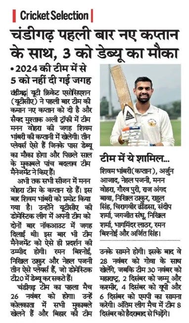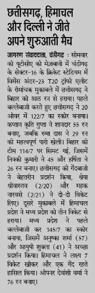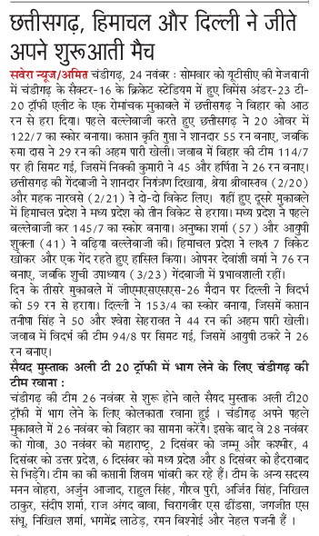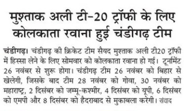चंडीगढ़ पहली बार नए कप्तान के साथ, 3 को डेब्यू का मौका +9 more stories मुश्ताक अली टी-20 ट्रॉफी के लिए कोलकाता रवाना हुई चंडीगढ़ टीमChandigarh CricketNov 25, 2025Share