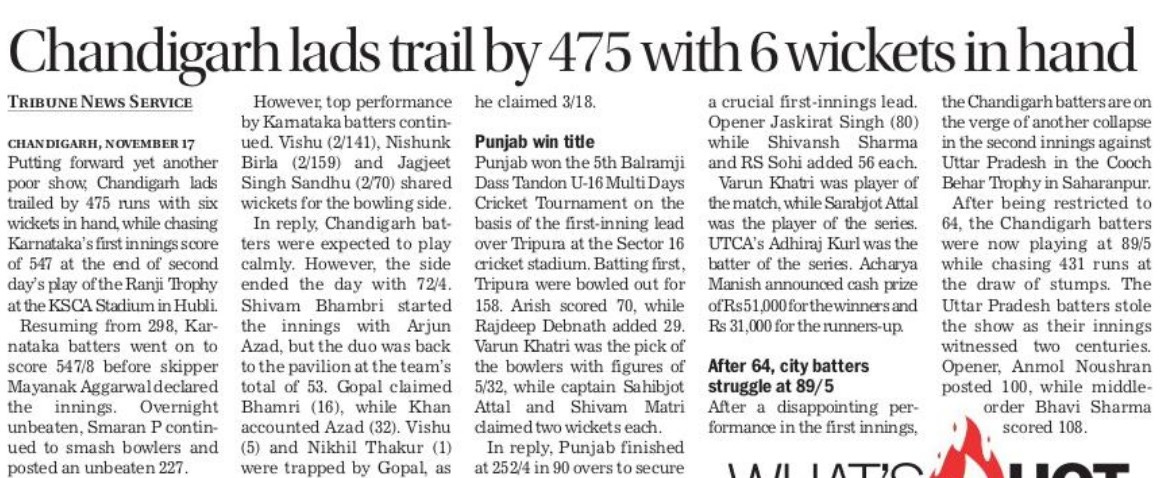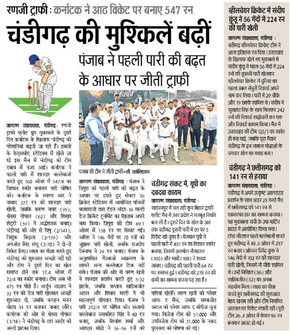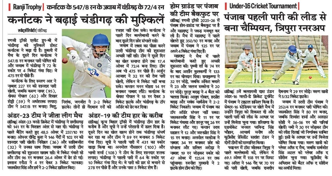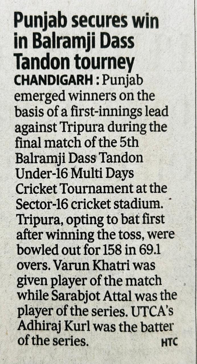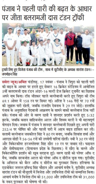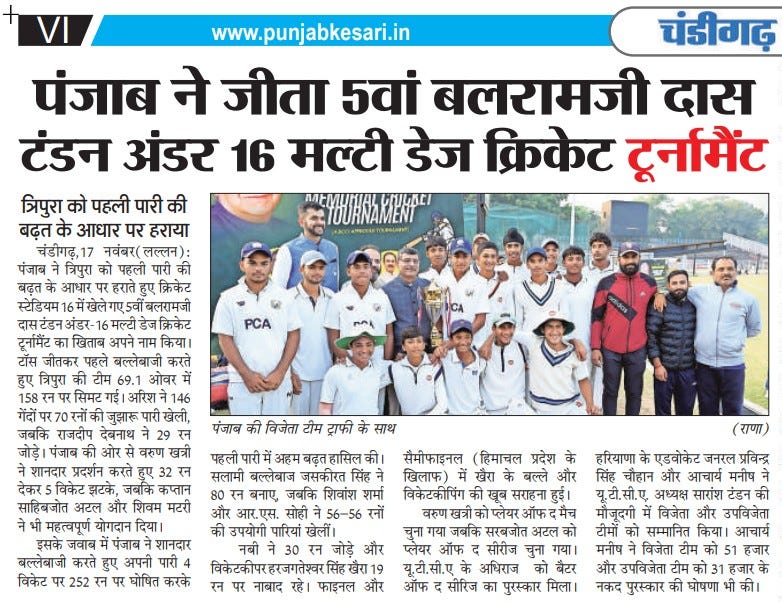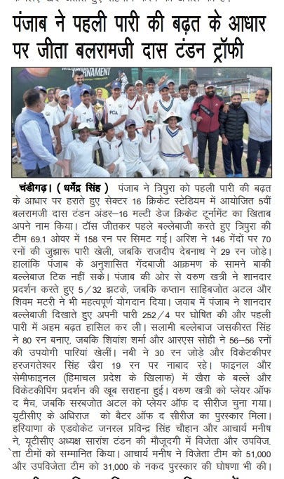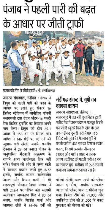 पंजाब ने जीता 5वां बलरामजी दास टंडन अंडर 16 मल्टी डेज क्रिकेट टूर्नामैंट +11 more storiesChandigarh CricketNov 18, 20252Share