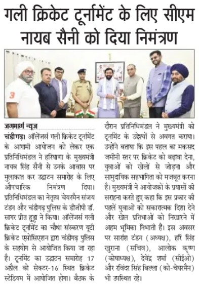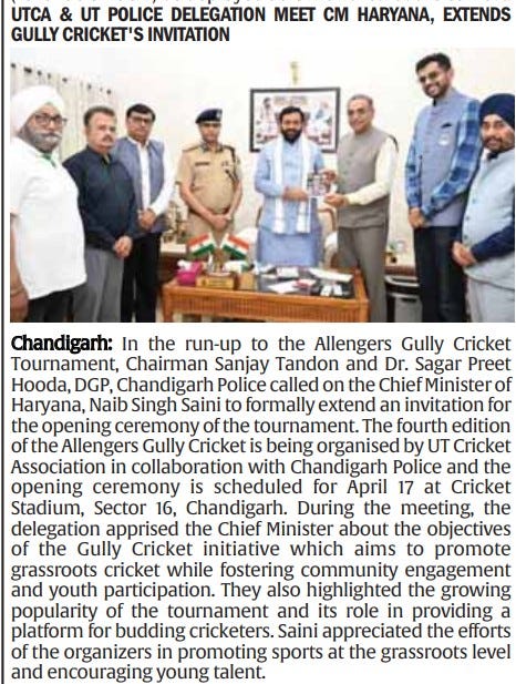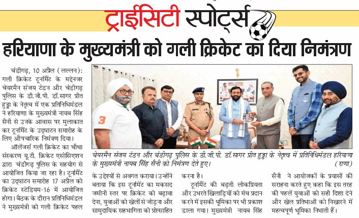 यूटीसीए एवं यूटी पुलिस के प्रतिनिधिमंडल ने हरियाणा के मुख्यमंत्री को गली क्रिकेट का निमंत्रण दिया +5 more storiesChandigarh CricketApr 11, 20261Share
