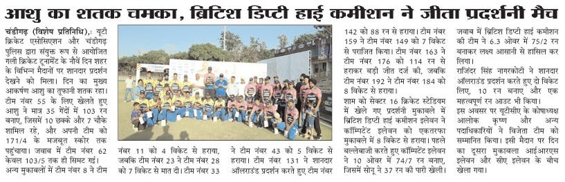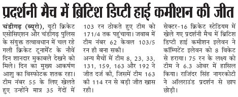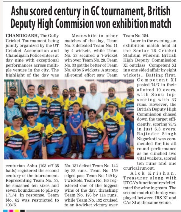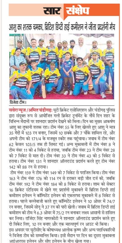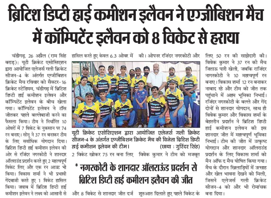 आशु का शतक चमका, ब्रिटिश डिप्टी हाई कमीशन ने जीता प्रदर्शनी मैच+7 more storiesChandigarh CricketApr 27, 2026Share