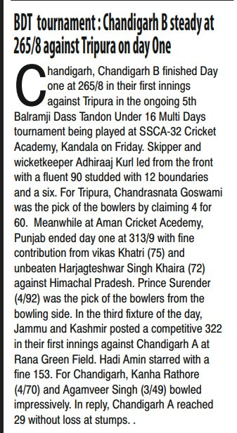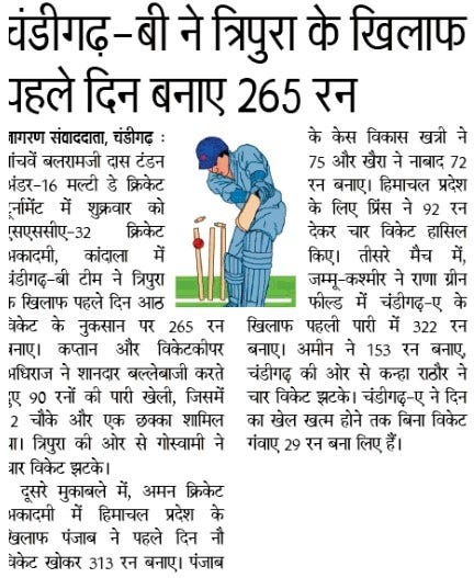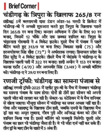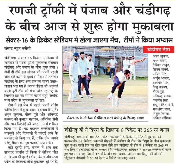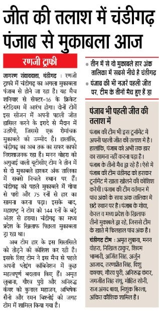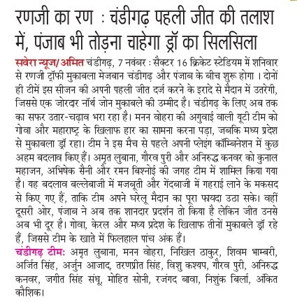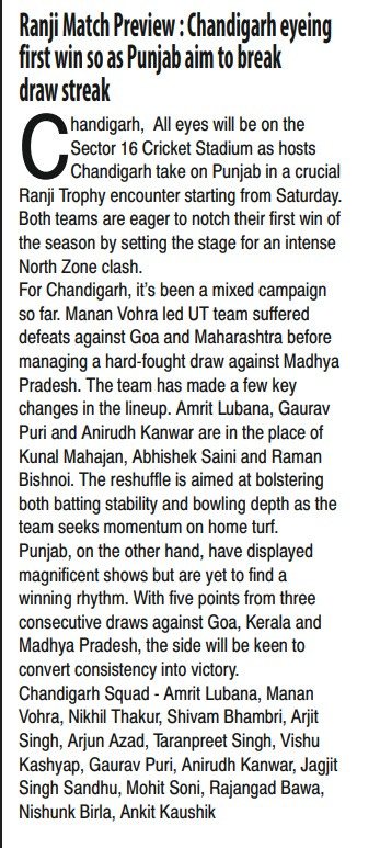 रणजी ट्रॉफी में पंजाब और चंडीगढ़ के बीच आज से शुरू होगा मुकाबला +7 more storiesसेक्टर-16 के क्रिकेट स्टेडियम में खेला जाएगा मैच, टीमों ने किया अभ्यासChandigarh CricketNov 08, 20251Share
