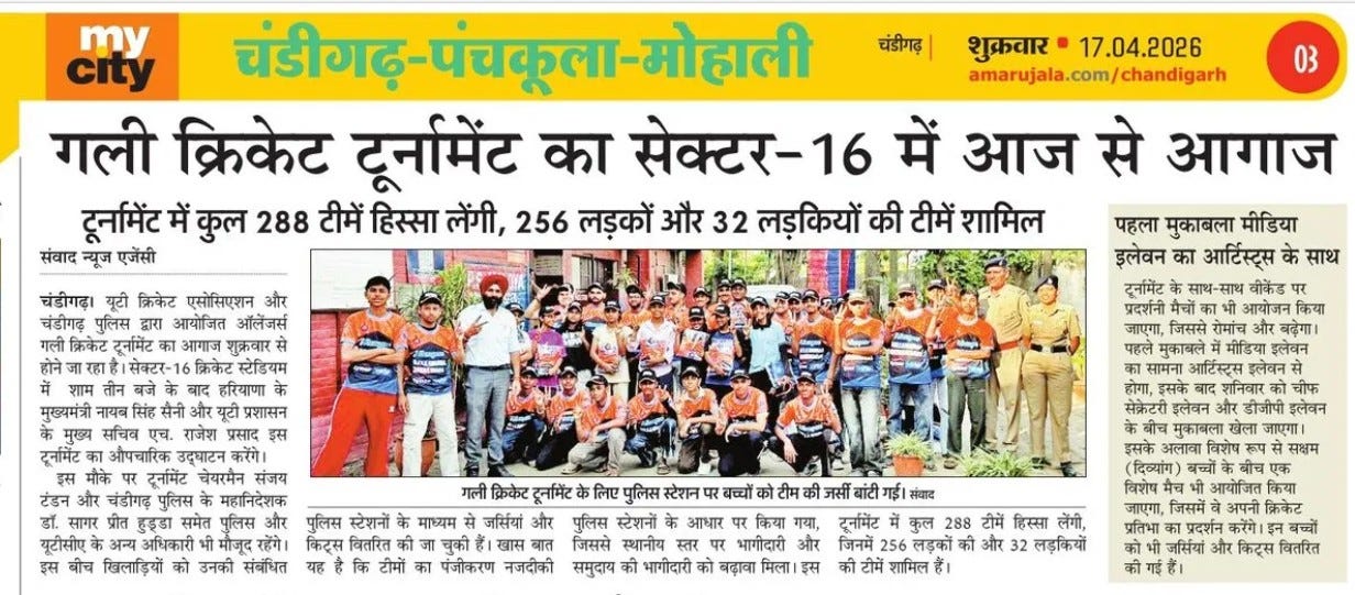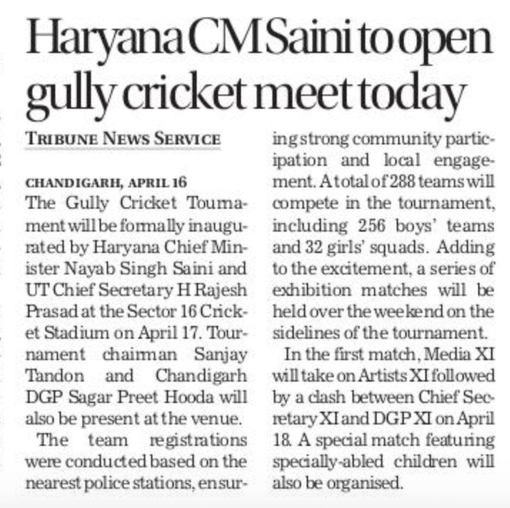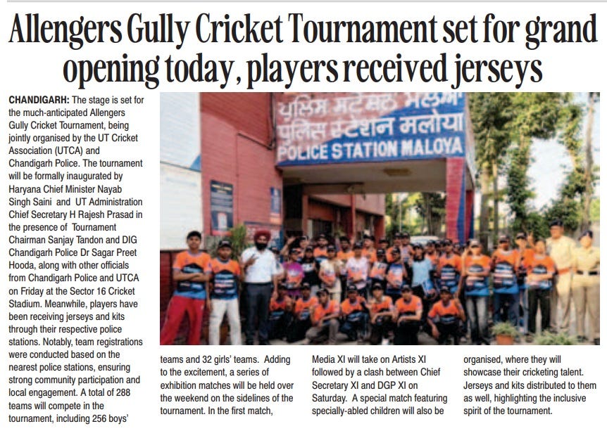 Allengers Gully Cricket Tournament set for grand opening today, players received jerseys +7 more storiesChandigarh CricketApr 17, 2026Share