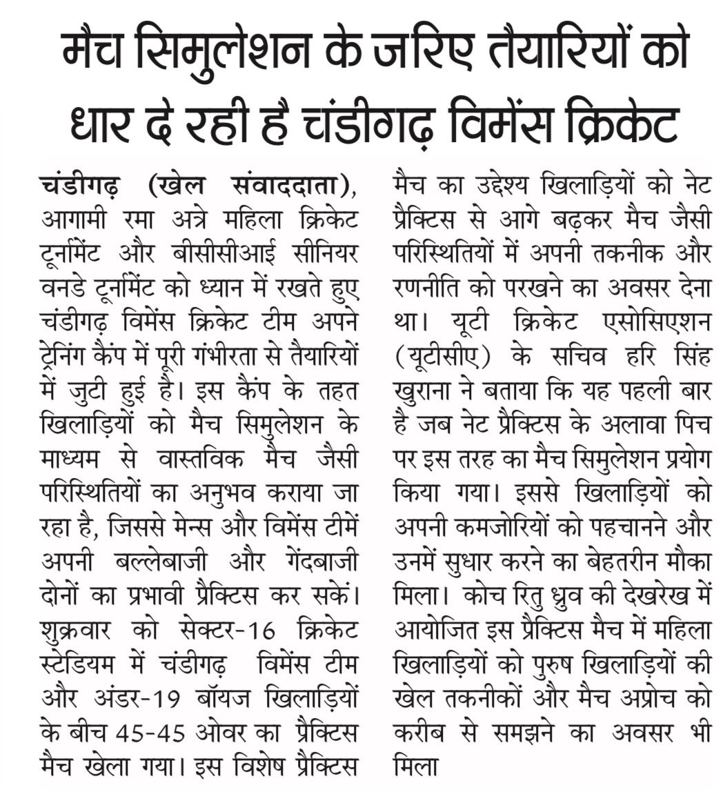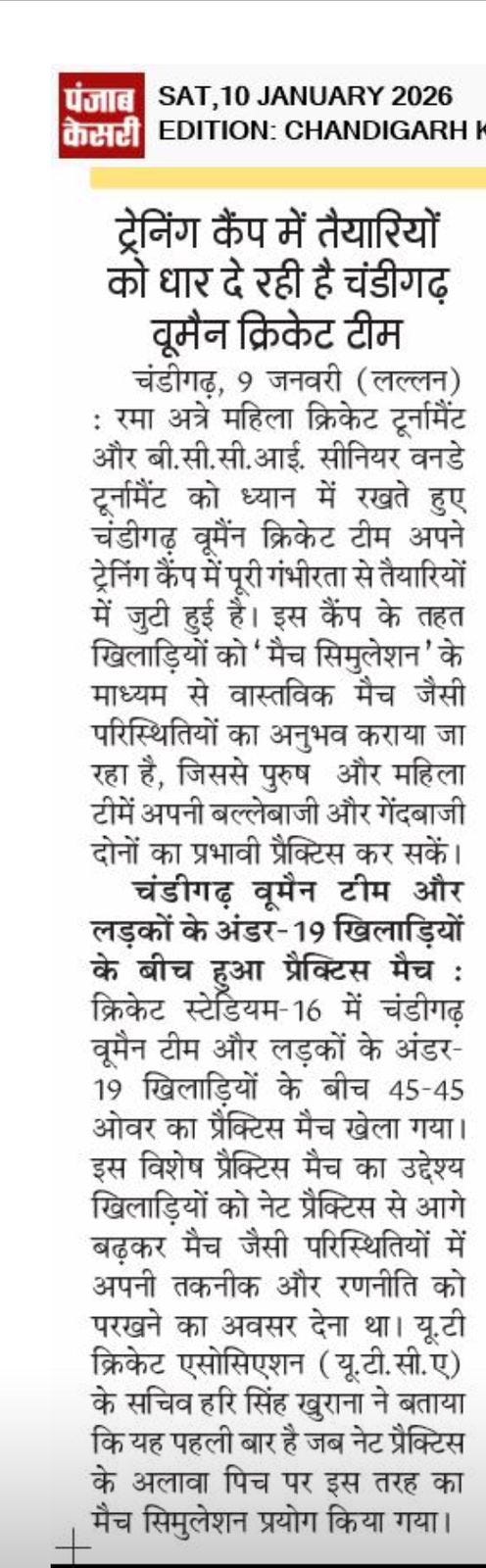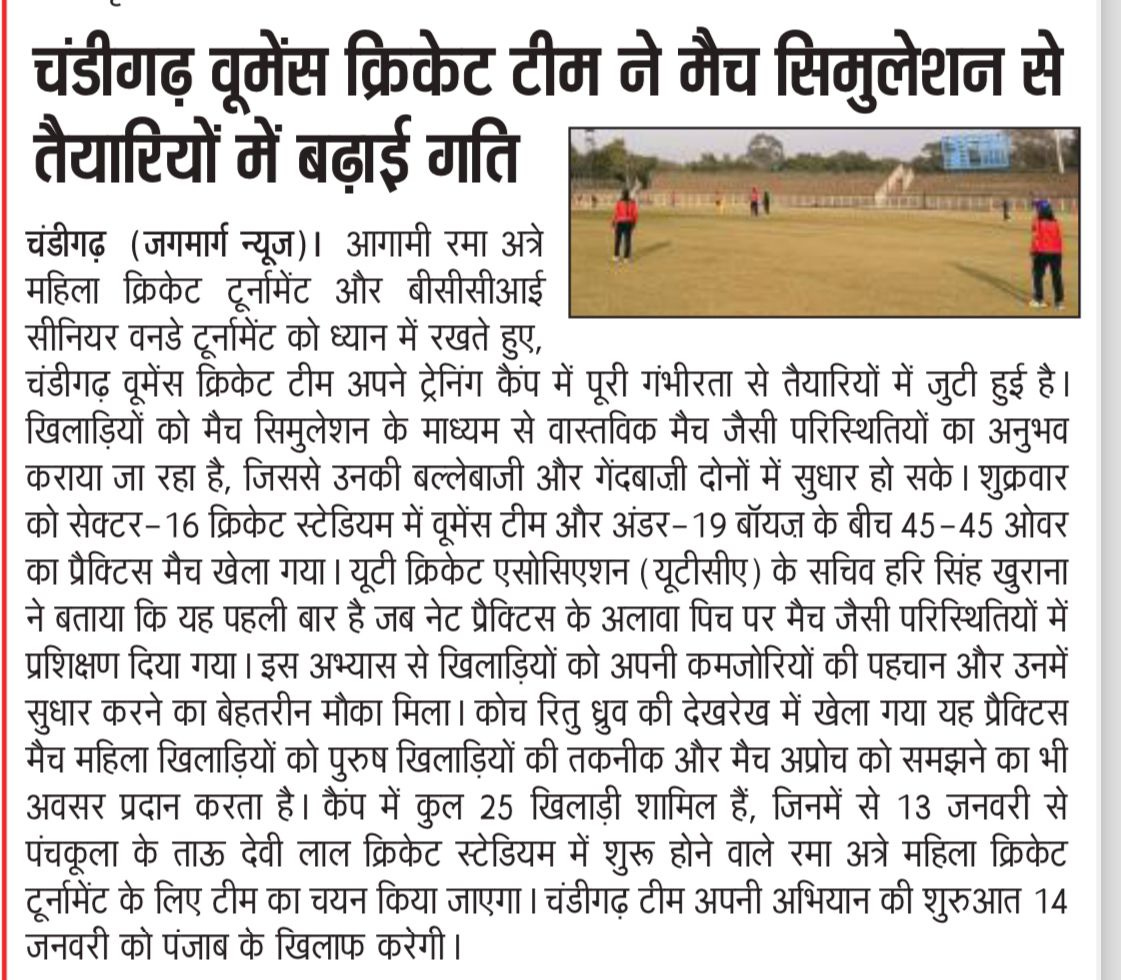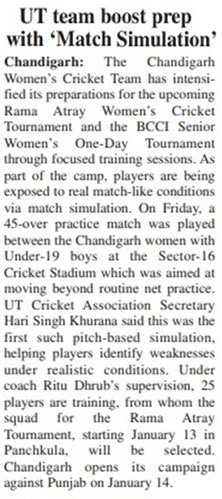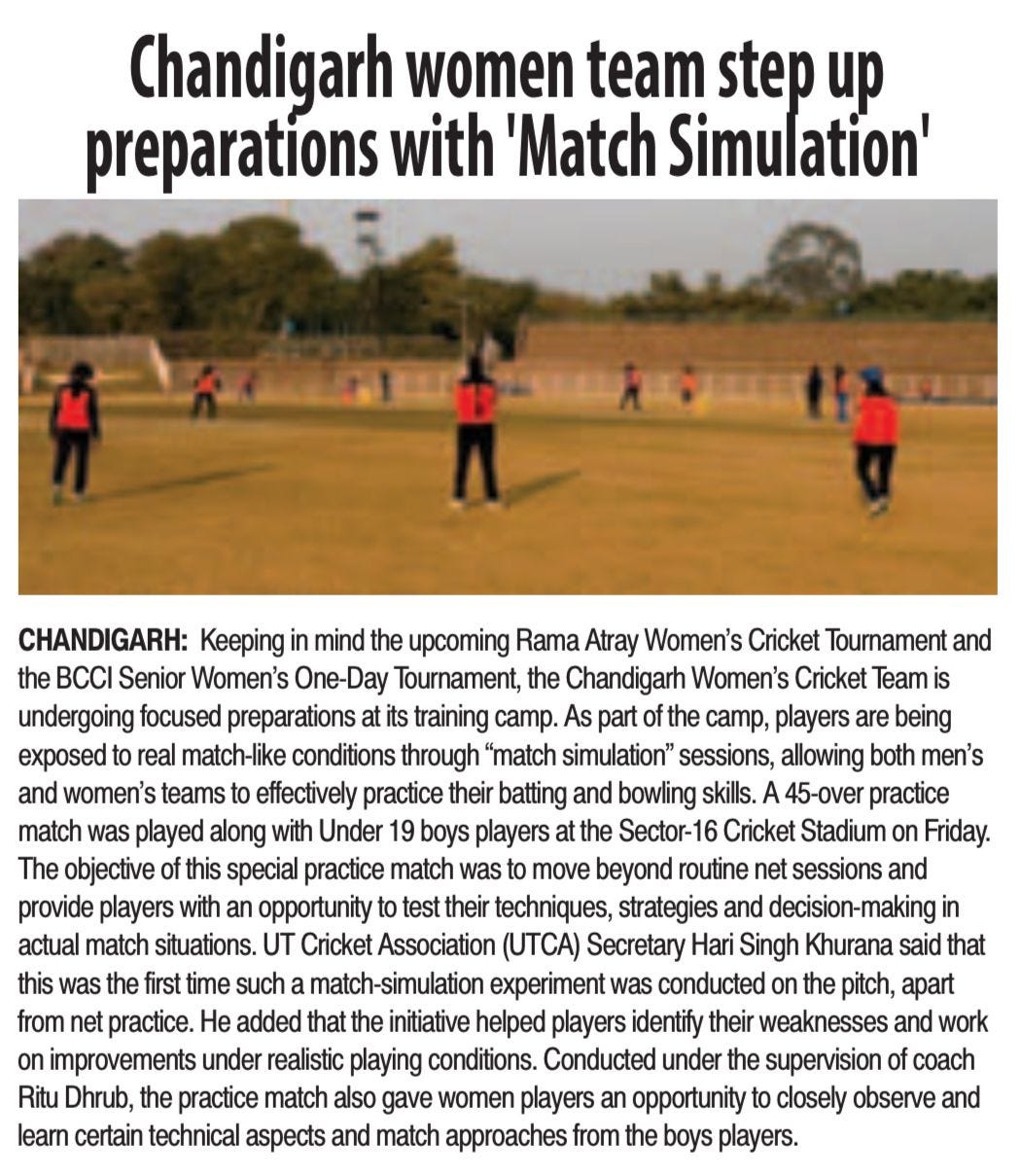 Chandigarh women team step up preparations with 'Match Stimulation' +6 more storiesChandigarh CricketJan 10, 20264Share